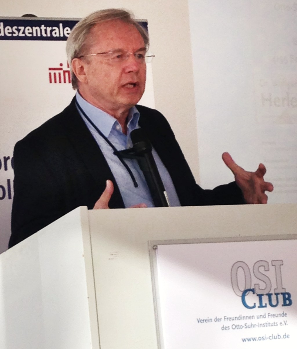 40 Jahre lang war Wolfgang Herles für die öffentlich-rechtlichen Anstalten tätig. Noch im letzten Jahr moderierte er für das ZDF die Literatursendung „Das blaue Sofa“. Als er nun am Montag Abend am Otto-Suhr-Institut der Freien Universität Berlin darüber sprechen wollte, „wie ARD und ZDF ihren Auftrag verfehlen“, so ließ das auch erwarten, hier rechne einer nach seinem Ausscheiden mit dem alten Arbeitgeber ab. Interesse gab es. Der Saal war mit geschätzten 150 Personen gut gefüllt. Die meisten im gleichen Alter wie Herles oder älter. Vielleicht waren die Jüngeren noch im Berliner Zentrum auf der re:publica.